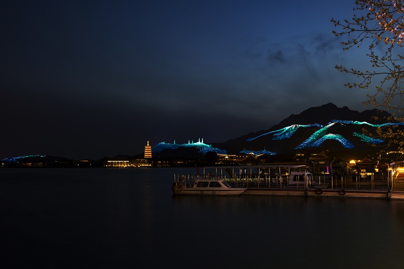 雁棲湖位于北京懷柔城北8公里處的燕山腳下,風光旖旎,湖水清澈,其夜景景觀覆蓋了21平方公里的山體和沿線公路。最初,雁棲湖夜景打造是為迎接“一帶一路”會議的到來,并成功在會議期間吸引了世人的矚目,在會議結束后,雁棲湖也成為了人們夜游的圣地。